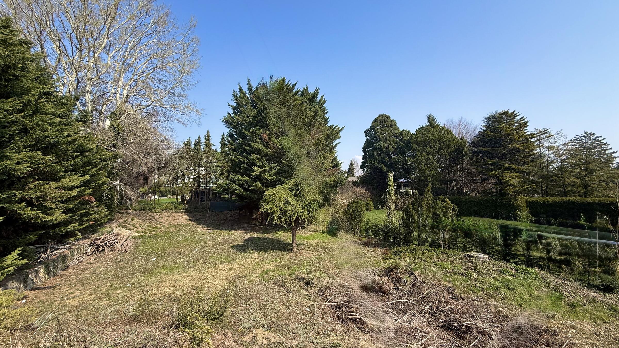 Das Grundstück liegt gut einen Meter über dem Straßenniveau und ist bereits gerodet.